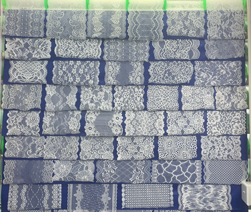 Hot Sale Fancy Nylon spandex spets stretch spets trim elastisk spets för underkläder och underkläder tillverkade av högelasticitet nylon spandex blandning material, det är mjukt, andas och har stark motståndskraft utan deformation. Det är lämpligt för nära passande slitage som underkläder, formkläder och vuxna kläder