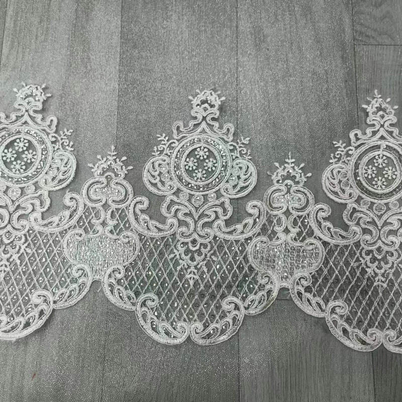 Lyxig vit brud fransk spets broderad brud spets trim för bröllopsklänning med en avancerad fransk spetsbas, utsökt tredimensionell broderi hantverk och rena vita toner, det utstrålar elegans. High-end skräddarsydda dekorationer specifikt för bröllopsklänningar och aftonklänningar, med känsliga och komplicerade mönster, ljus och hudpenetrerande struktur, stöd för att anpassa bredd och mönster, perfekt tolkning av estetiken för romantiska och lyxiga brudar. Med en avancerad fransk spetsbas, utsökt tredimensionell broderi hantverk och rena vita toner, utstrålar den elegans. High-end skräddarsydda dekorationer specifikt för bröllopsklänningar och aftonklänningar, med känsliga och komplicerade mönster, ljus och hudpenetrerande struktur, stöd för att anpassa bredd och mönster, perfekt tolkning av estetiken för romantiska och lyxiga brudar.
