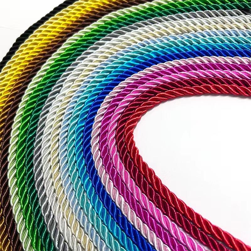 Fast färg 7mm strängar färgade silkesrep dekoration silkesrep valt naturligt sidenmaterial, 7 mm i diameter, rik på färg och elegant i glans. Det är lämpligt för avancerad presentförpackning, information om bröllopsklänning, handgjorda tillbehör och heminredning. Det är flexibelt, slitstöd och miljövänligt. Det erbjuder en mängd klassiska solida färgalternativ, stöder anpassade färger och längder och belyser en förfinad struktur